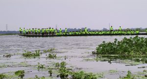 মাহবুবুজ্জামান সেতু : নওগাঁর মান্দা উপজেলার ১০ নম্বর নূরুল্যাবাদ ও ১১ নম্বর কালিকাপুর ইউনিয়নের উদ্যোগে গ্রামীণ ঐতিহ্যবাহী নৌকা বাইচ প্রতিযোগিতা অনুষ্ঠিত হয়েছে। বৃহস্পতিবার (১১ সেপ্টেম্বর) বিকেলে উপজেলার চকভোলাই, চকদেবীরাম ও কালিনগর গ্রামের যৌথ উদ্যোগে এ নৌকা বাইচ প্রতিযোগিতা অনুষ্ঠিত হয়। উৎসবমুখর পরিবেশে হাজারো মানুষের উপস্থিতিতে প্রতিযোগিতাটি জমে ওঠে।