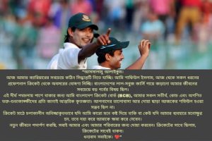 নতুন জীবনে পদার্পন করছি, সবাই আমার এবং আমার পরিবারের জন্য দোয়া করবেন। ক্রিকেটের সাথে ছিলাম, ক্রিকেটের সাথেই থাকব। ধন্যবাদ সবাইকে।’