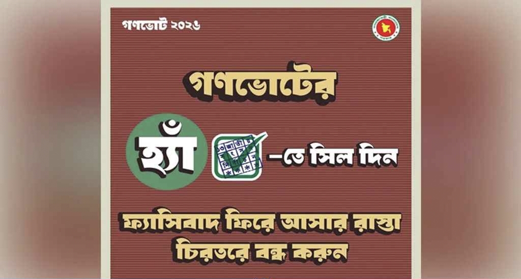 ফটোকার্ডটিতে লেখা রয়েছে— ‘গণভোটের ‘হ্যাঁ’-তে সিল দিন, ফ্যাসিবাদ ফিরে আসার রাস্তা চিরতরে বন্ধ করুন।’