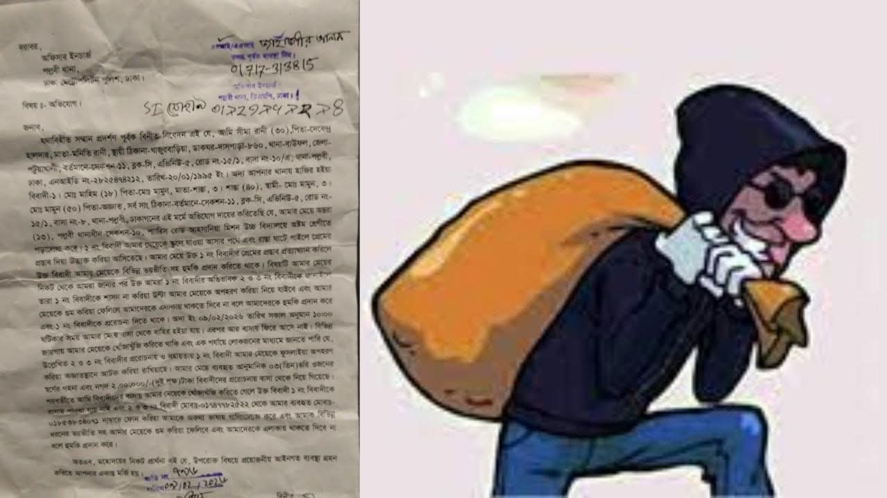 তার অভিযোগ, ঠিকানা বলার একপর্যায়ে তিনি হঠাৎ অচেতন হয়ে পড়েন। পরে জ্ঞান ফিরে দেখেন, তার গলায় থাকা ১০ আনা ওজনের স্বর্ণের চেইন (আনুমানিক মূল্য ১ লাখ ৫০ হাজার টাকা), ৬ আনা ওজনের এক জোড়া কানের দুল (আনুমানিক মূল্য ৯০ হাজার টাকা) এবং একটি রিয়েলমি ব্র্যান্ডের মোবাইল ফোন (মূল্য প্রায় ১৯ হাজার টাকা), যাতে ০১৭৪৮৪২৮৮৯২ নম্বরের সিম ছিল—সেগুলো নেই।